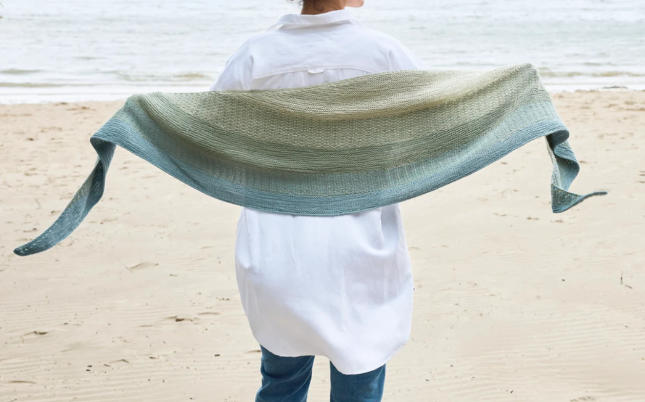 Geniessen Sie ein abwechslungsreiches Strickerlebnis: Im Tuch Tahniah trifft Zartheit auf Struktur. Variationen des Webmusters wechseln sich mit Kraus rechts ab und formen dieses halbmondförmige Tuch mit asymmetrischen Streifen. Designerin Susanna Winter schlägt uns für die sanften Übergänge die Moods-Farben Pistazie, Schilf und Libelle der Cheeky Merino Joy vor, was Tahniah elegant und leicht macht.